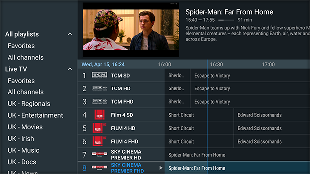 • Supports Live TV, EPG, Movies & Series
